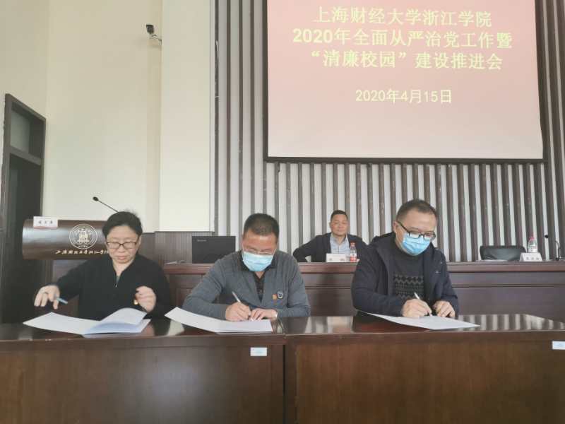 会上,王建新、马洪、陈钢分别与计划财务处、会计系和统计系党总支纪检委员代表签订2020年党风廉政建设主体责任目标管理责任书和监督责任目标责任书。会议还听取了招生就业处、公共管理处、经济与信息管理系、外语系2019年落实全面从严治党主体责任情况汇报。