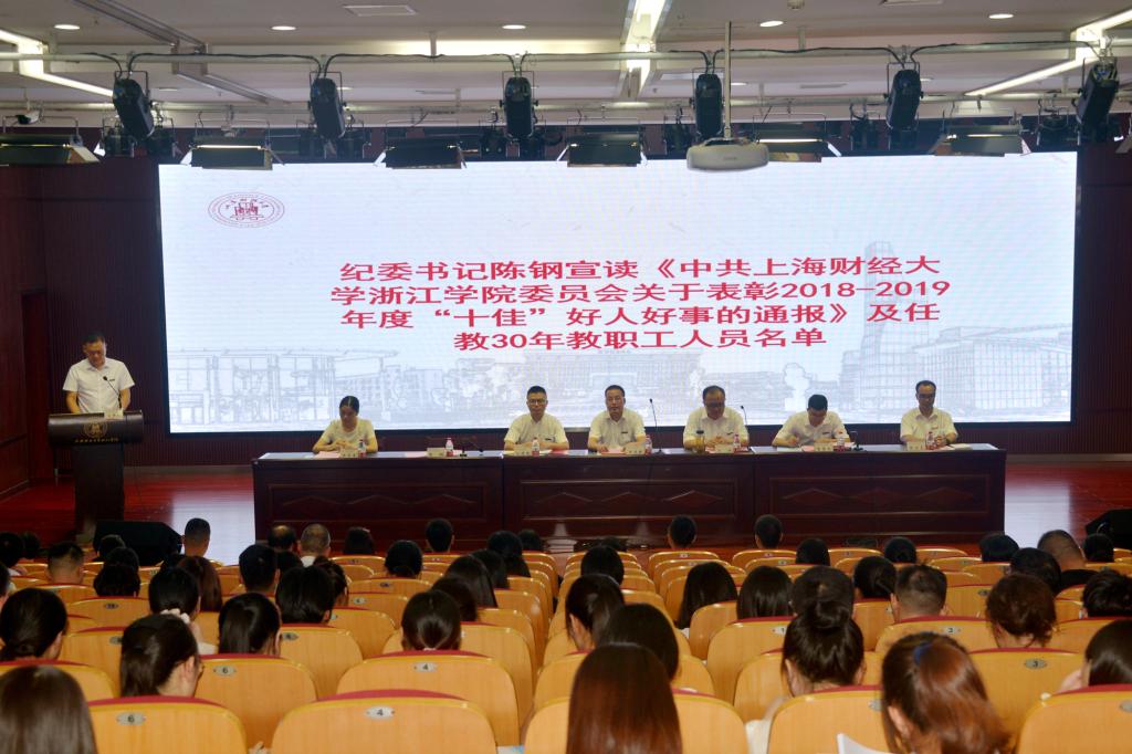 会议对任教三十年教职工、荣获2018-2019年度“十佳好人好事”先进集体和个人进行了表彰,组织新进教职工进行了集体宣誓,就文明城市创建工作作了动员部署。