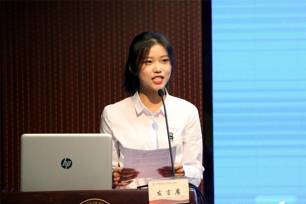 工商管理系赵竞竞老师作为教师代表发言。她与同学们一起重温了“厚德博学 经济匡时”的学校校训,希望同学们在接下来的学习和生活中用校训精神激励自己,共奋进、同担当。