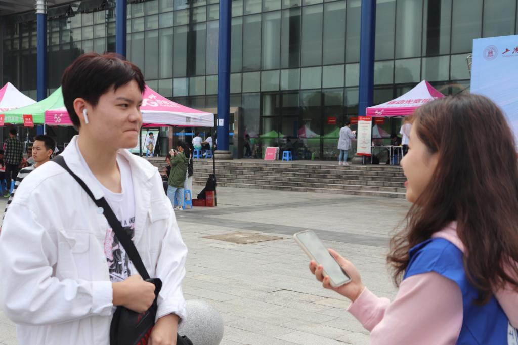 记者还遇到一位看起来有些神情疲累的家长,她靠着行李箱,旁边站着她孩子。这位马女士是注册会计班童同学的母亲,他们刚从杭州风尘仆仆地赶过来。她对财浙的第一印象就是特别干净,很宽敞,疫情防控工作也做的也很到位,对每位进入校园的人员都进行严格的体温检测。谈到她对孩子今后期望的时候,马女士说:“希望他学好专业知识,最好能在自己专业这方面考研深造。”