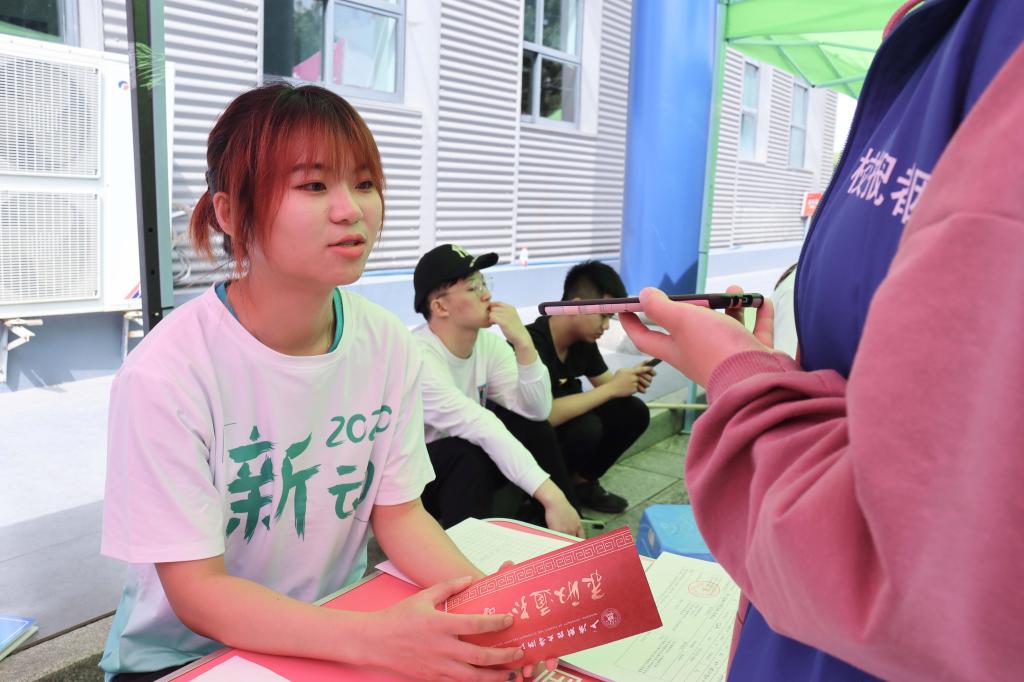 新生们无一不拖着沉重的行李,好在有迎新志愿者的帮忙。经济与信息管理系的志愿者顾梦佳说自己起了一个大早,忙忙碌碌地迎接了最早一批来到学校的新生,感觉很充实很有意义。看到拎着大包小包的新生们,感觉像是看到了大一时的自己,也是这样懵懂的来到这里,充满好奇和干劲。一张张陌生的脸却带着熟悉的目光,都是寻寻觅觅、未来可期。