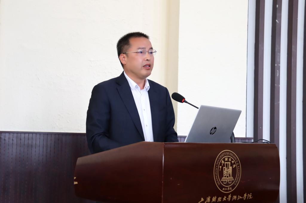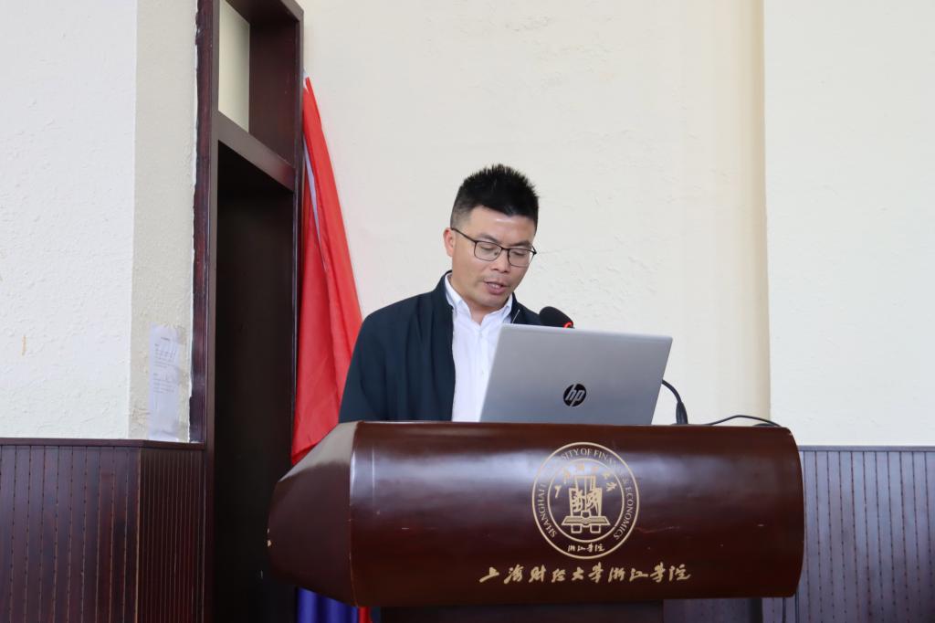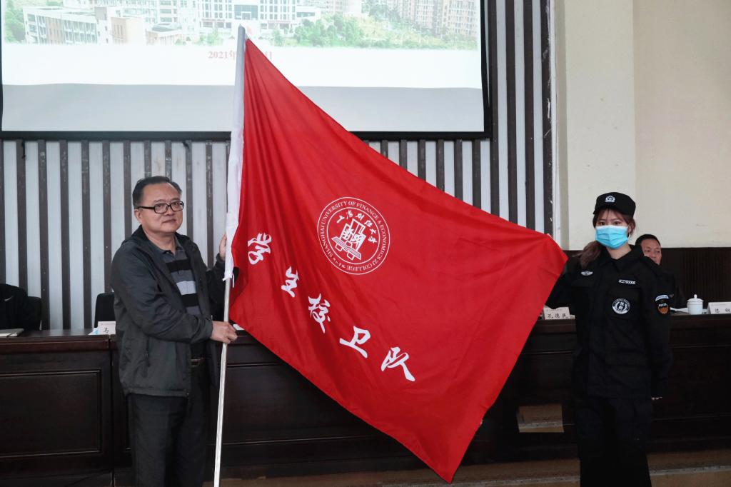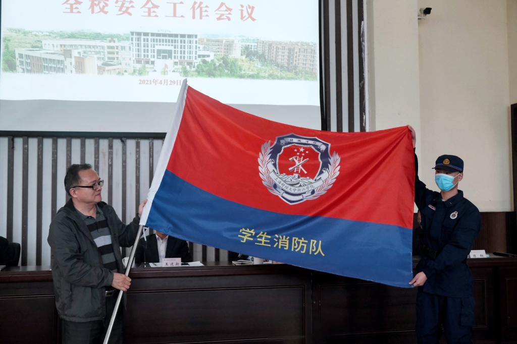 院长马洪为校护卫队、校消防队授旗。学生处、实践教学中心、公共管理处、外语系等单位分别作安全工作交流发言。