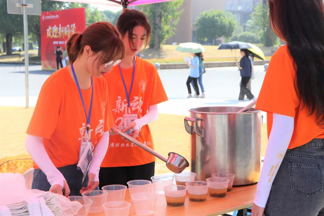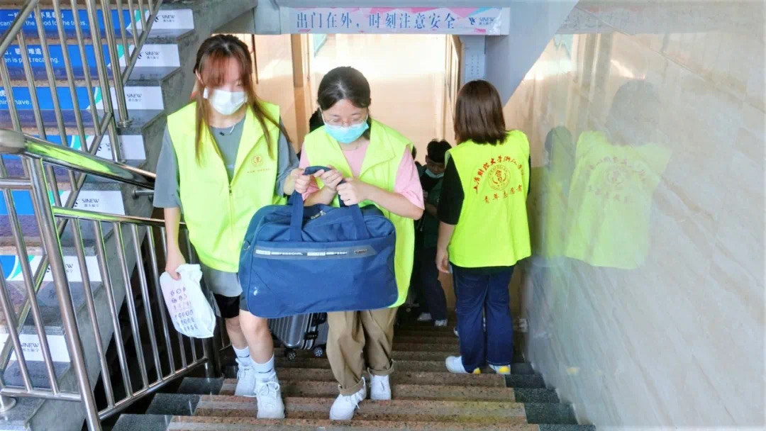 为做好疫情防控要求下的新生迎新活动,学校提前做好了全方位的部署,各部门严阵以待,全力做好迎新保障工作。学校在金华高铁站和金华高铁南站都设置了接站点,迎新志愿者也早早的在此等候,随后一辆辆大巴车将新生送往学校。校内也安排行李托运志愿者及摆渡车帮助新生将行李送到寝室。此外校园内还有随处可见的凉亭,为学生提供绿豆汤等防暑饮品。
