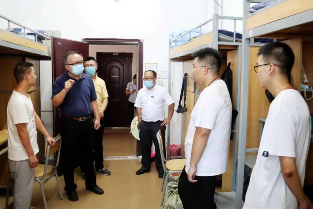 一大早,校领导及相关职能部门负责人早早来到迎新报到现场,看望前来报到的2021级新生,并慰问了现场的工作人员与志愿者。下午,校领导一行走访了新生宿舍,了解新生到校报到情况,勉励他们珍惜大学时光,直面一切挑战,在拼搏奋斗中书写人生新的华章。