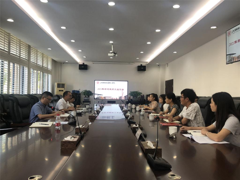 最后,现场举行新进教职工座谈交流会。会上,6名新教师介绍了各自的基本情况,分享了入职感想和对未来的期待。张正亮重点强调了师德师风的重要性,教育引导新教师要恪守职业准则,涵养高尚师德,潜心立德树人。孔德民则向新教师殷切寄语,并提出三点要求:一是师德自律,要做好榜样,模范带头;二是工作自律,要埋头向下,眼里有活;三是学习自律,要做到科研与工作、实践相互促进。