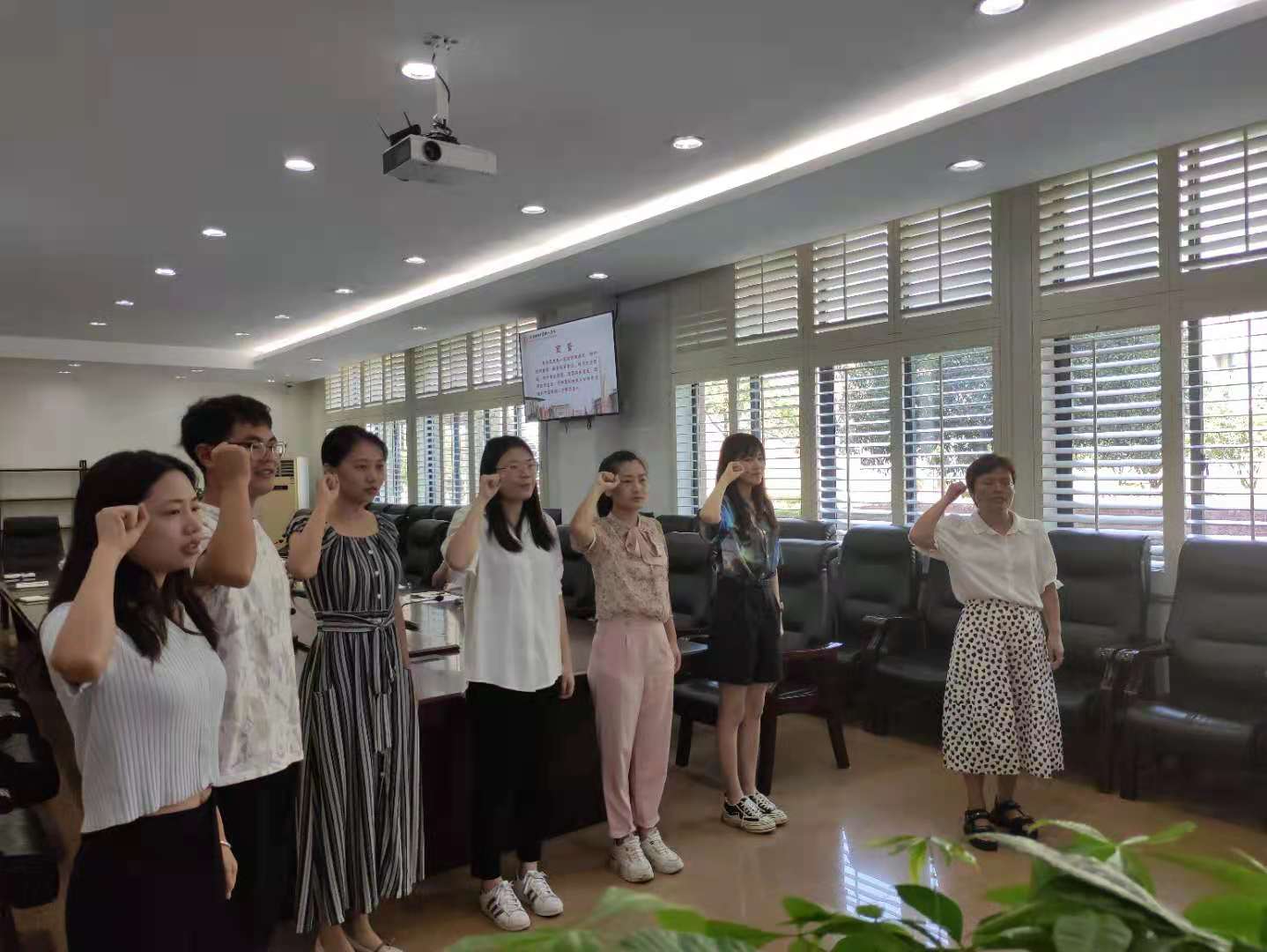首先,在学生处负责人韦金红的带领下,新进教职工庄严宣誓入职。