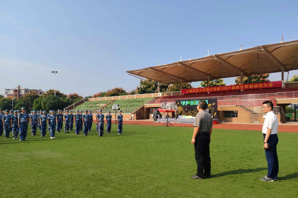 9月17日上午,学院院长马洪、党委副书记孔德民在金东区人武部带训教官庄敬、学院院长办公室主任和人武部负责人陪同下,来到校内军训各场地,看望慰问正在烈日下军训的教官和2021级新生。
