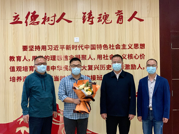 2022年5月9日上午,学院党委书记王建新,院长马洪,党委委员、组织部部长张正亮前往统计系慰问刚刚回校返岗抗疫一线教师志愿者罗平老师。