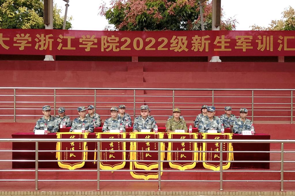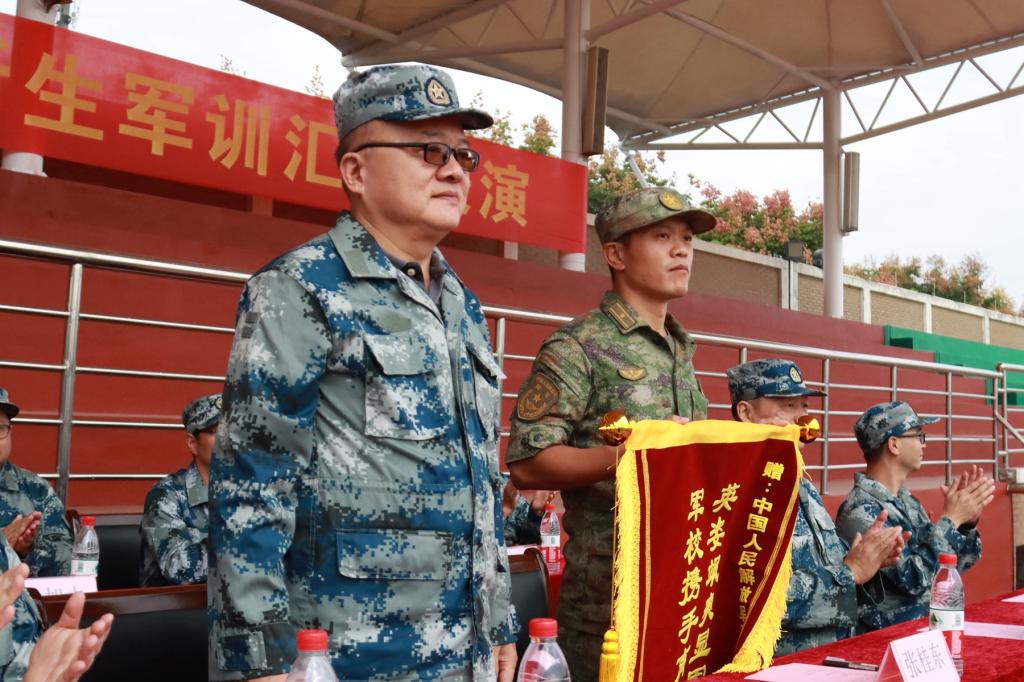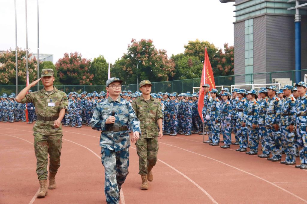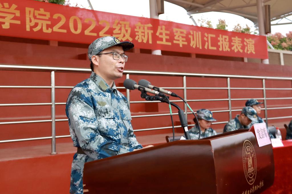 烈日长空着戎装,苍穹之下斗志昂!9月23日上午,学院举行2022级新生军训汇报表演,院长马洪,党委副书记孔德民,纪委书记陈钢,副院长邱风,党委委员张正亮、郑伟俊,帮训部队副教导员张桂东,各系党总支负责人出席大会。大会由学院人武部负责人主持。