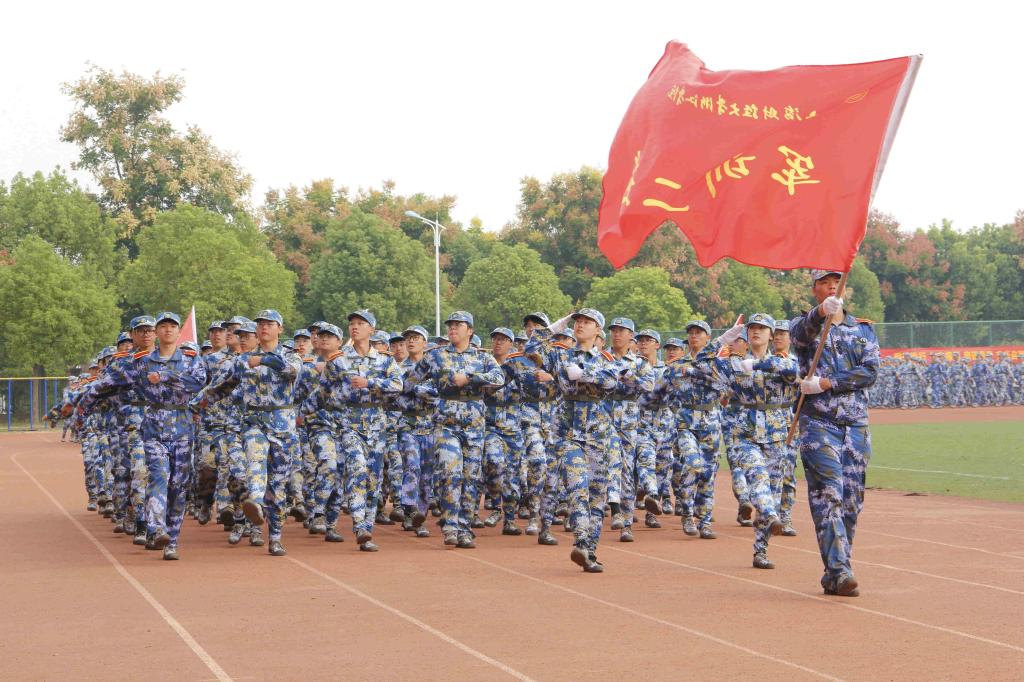 孔德民副书记在张桂东副教导员的陪同下,检阅了各军训方阵,1500余名新生军容严整、斗志昂扬,充分展现了军人般的飒爽英姿。