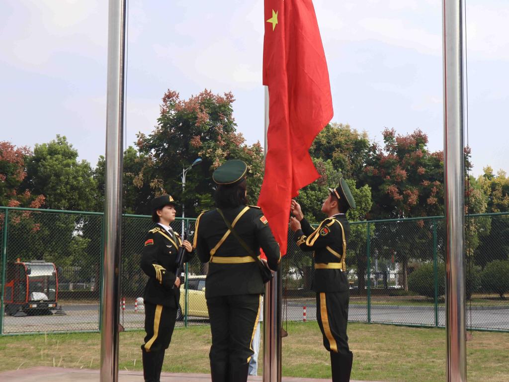 上午8时,在雄壮的国歌声中,国旗徐徐升起,军训汇报表演正式拉开帷幕。
