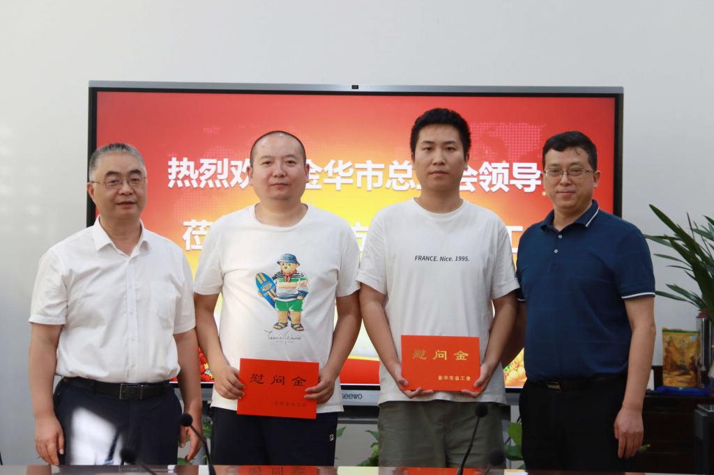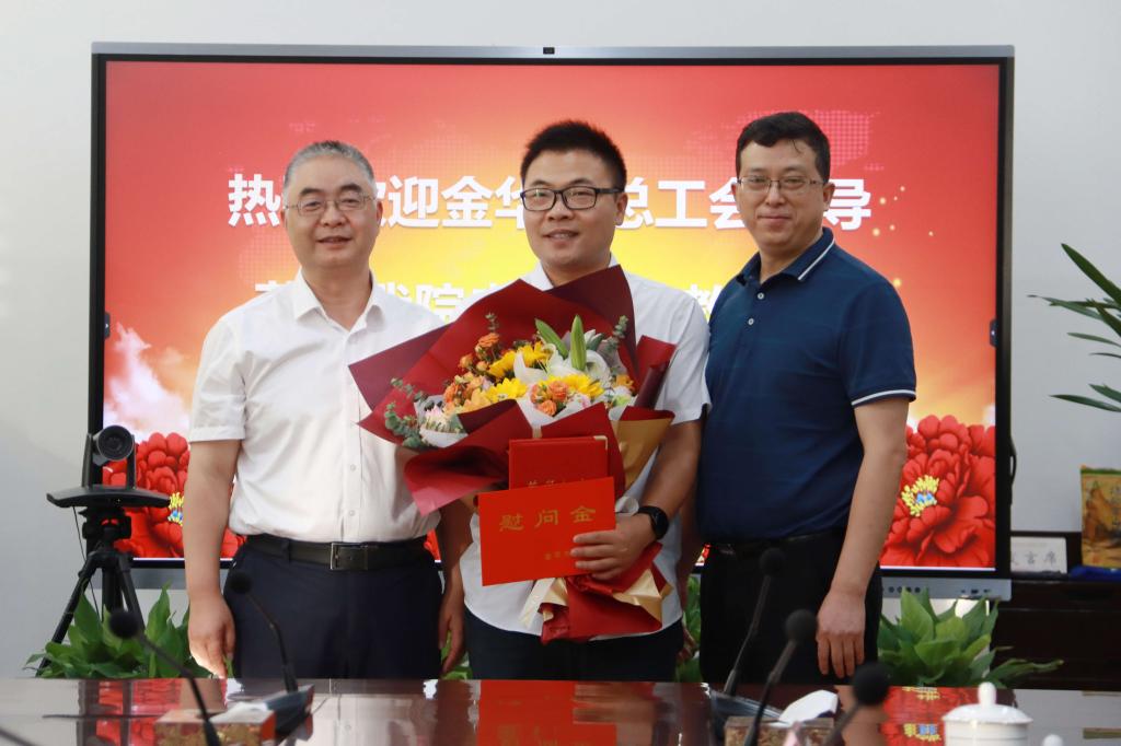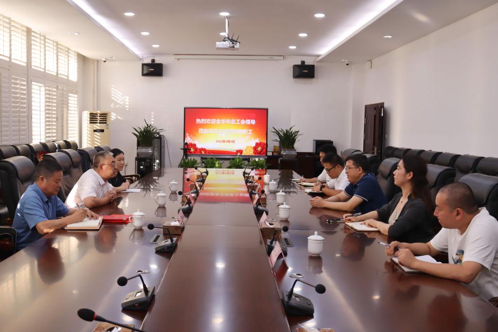 在第38个教师节来临之际,9月5日下午,金华市总工会党组书记、副主席施文臻,市总工会党组成员、教育工会主席吴飞,市教育工会副主席杜元跃一行莅临我院开展教师节慰问活动,送来党和政府的关怀以及工会组织的关心关爱。学院党委委员、副院长、工会主席曾惠成,工会有关负责人陪同慰问。