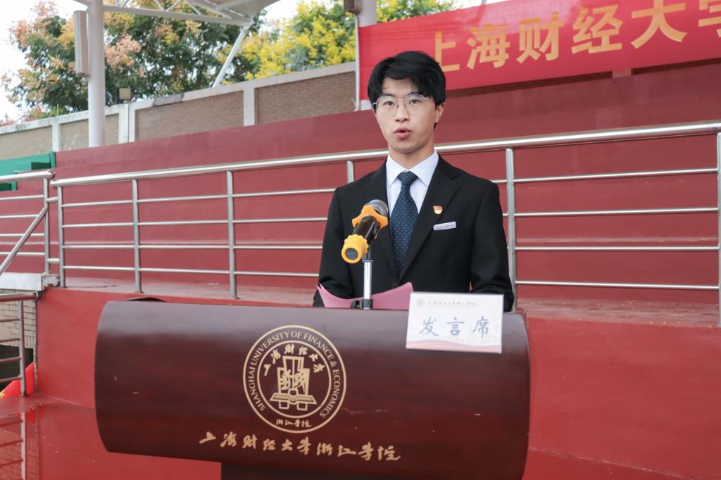 2020级金融学3班童文瀚同学作为在校生代表发言,他同学弟学妹们分享了学习经验,勉励学弟学妹们在每一个岔路口都能做出属于自己“最财浙”的选择。