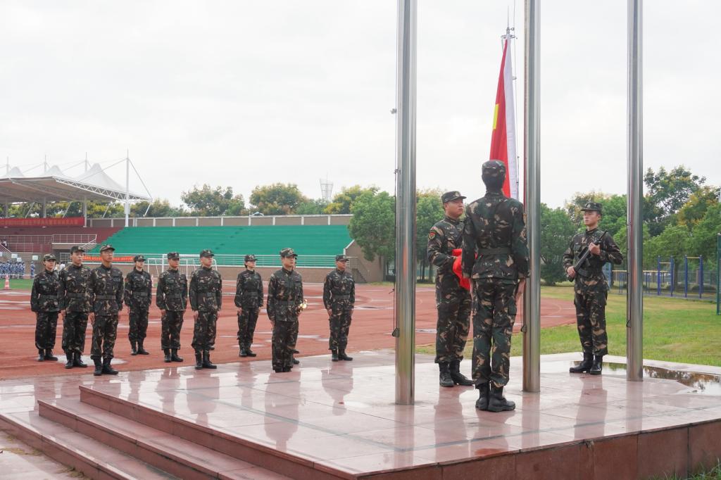 典礼最后,党委书记王建新向军训团授旗。