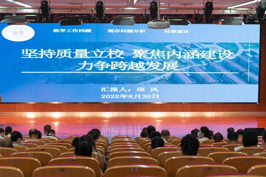 为推动学院内涵建设,促进学院教育教学质量再上新台阶,8月30日上午,学院在图书馆报告厅召开2022年教学工作会议。学院全体领导班子成员,各系(部)、部门负责人,各专业、教研室负责人,全体专业教师、教学管理人员等参加会议。会议由教务处负责人主持。