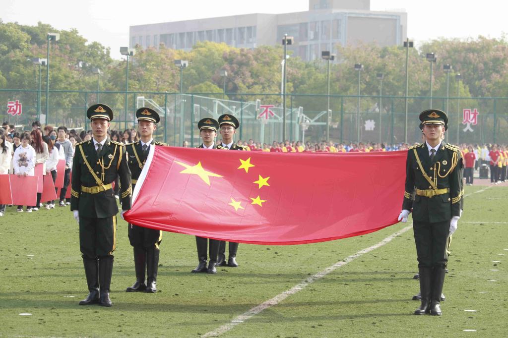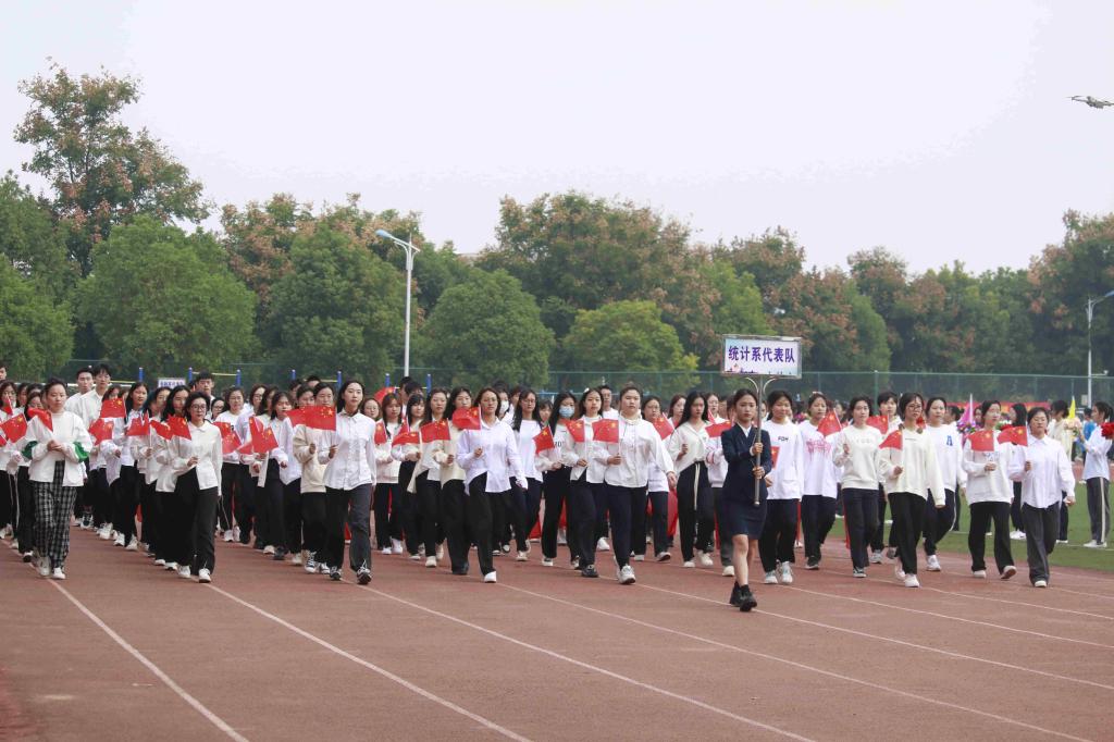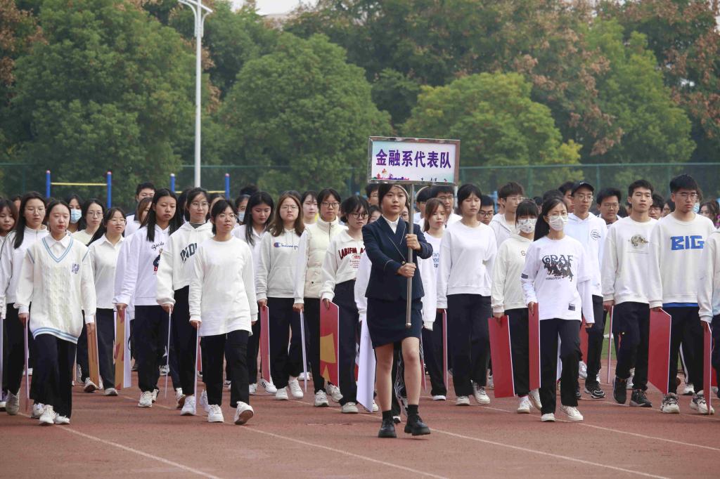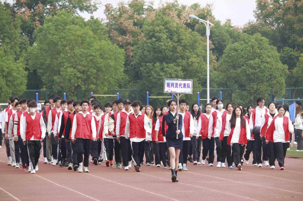在国旗护卫队的引领下,由各系组成的运动员代表方阵踏着整齐的步伐,在高昂嘹亮的口令声中依次接受主席台领导的检阅,展现出运动员们的昂扬斗志。