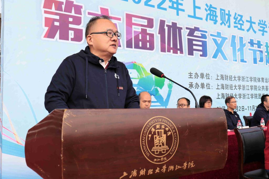 院长马洪致开幕辞。他指出,学院一直秉承“健康第一 五育并举”的教育理念,紧紧围绕新时代教育教学要求,深入学习贯彻习近平总书记关于教育、体育的重要论述,贯彻落实立德树人根本任务,立足基本校情,全面加强学校体育工作,构建德智体美劳全面发展的教育体系,帮助学生在体育锻炼中享受乐趣、增强体质、健全人格、锤炼意志。学院积极探索新时代学校体育教育新路径,深化体育教学改革,育人成效显著增强,学生身体素质和综合素养明显提升。学院在全面开展校内群体活动的基础上,还建立健全了运动队训练机制,为学生搭建更高层次的竞赛平台。