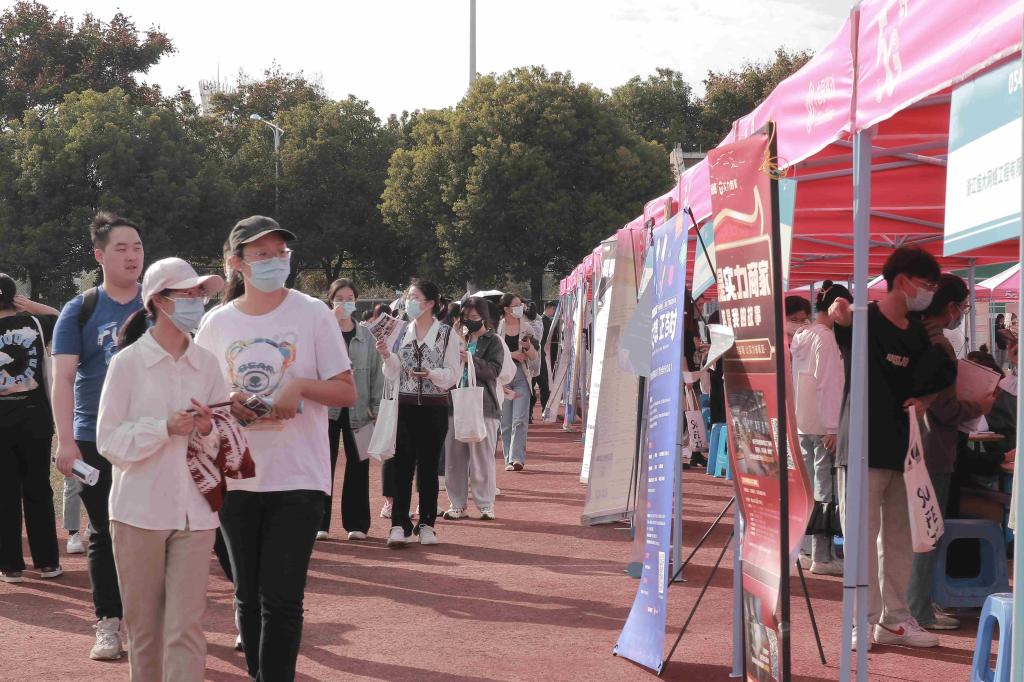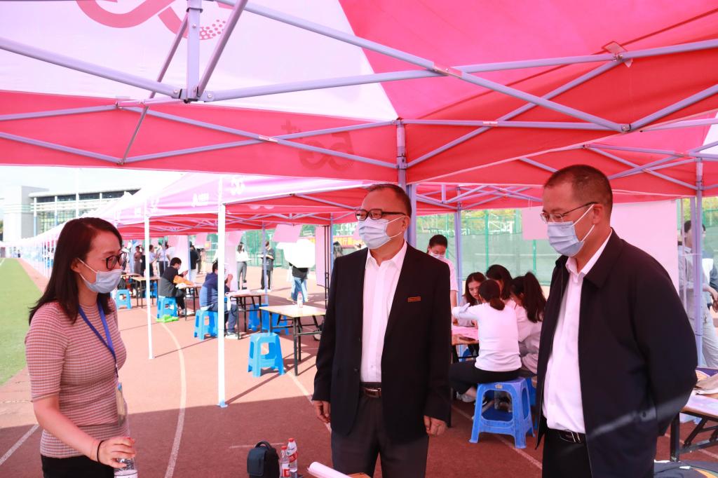 为了更好地拓宽毕业生就业渠道,大力构建毕业生与用人单位的交流平台,积极为用人单位输送应用型人才,11月10日,学院2023届毕业生秋季校园招聘会在校田径场举行。本次招聘会由学院招生就业处主办。学院党委书记王建新、院长马洪、党委副书记孔德民,相关职能部门负责人、与会企业代表、2023届毕业生及在校学生参加了招聘会。