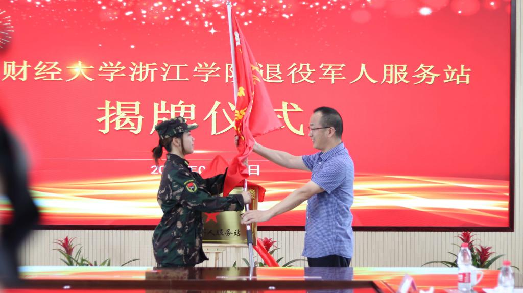 曾惠成代表学院向金华市、金东区退役军人事务局一直以来对学院的支持表示衷心感谢,将以此次揭牌仪式为契机,充分发挥学院优势资源,联动做好退役军人和其他优抚对象服务保障工作。他对于下一步工作提出三点要求:一是要严格落实退役军人优待政策,要充分保障退役学生在转专业、国家助学金、学费减免、学费补偿、评奖评优、就业帮扶等方面的权益;二是要持续完善退役军人服务站建设,以退役学生为中心,尽快丰富和完善服务内容和能级,全力打造功能齐全、服务周到、暖心温馨的标杆式退役军人服务站,不断提升在校退役学生的荣誉感、幸福感和归属感;三是要联动退役军人事务局,拓宽工作思路,以服务站为阵地,以志愿服务队为依托,走出校园,走进乡镇街道,开展形式多样的志愿服务和社会调研,打响高校退役军人服务站特色品牌。