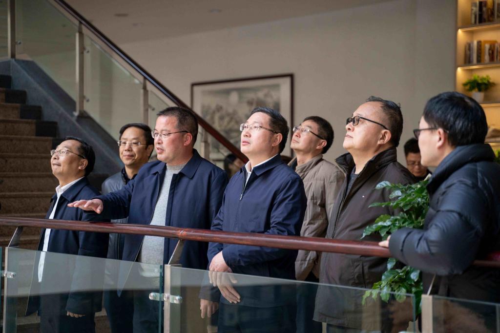 3月8日下午,市委常委、常务副市长张新宇一行来我院调研指导工作。市政府副秘书长于纲,市教育局、市资规局、金华高等研究院主要负责人,市人社局、市建设局分管负责人陪同调研。