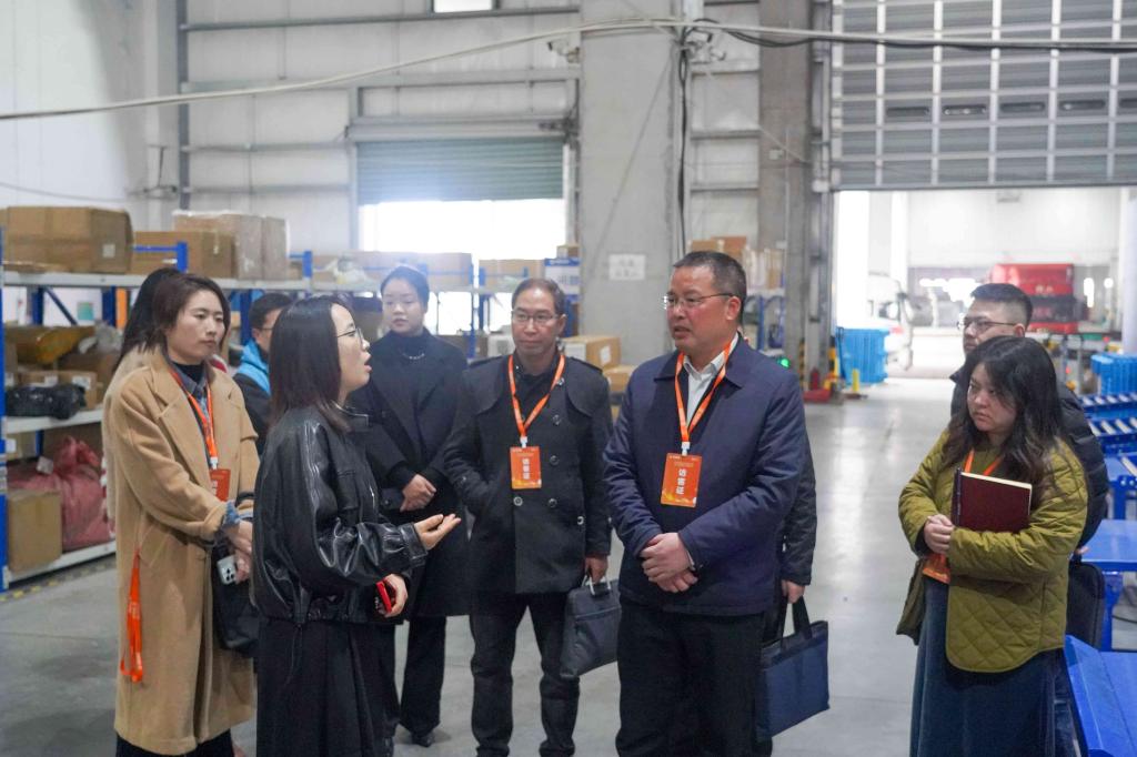 王建新一行先后参观了浙江锦联国际物流有限公司全国总仓义乌仓及集团总部,深入了解企业发展历程、运营模式、技术应用及仓储物流管理流程。