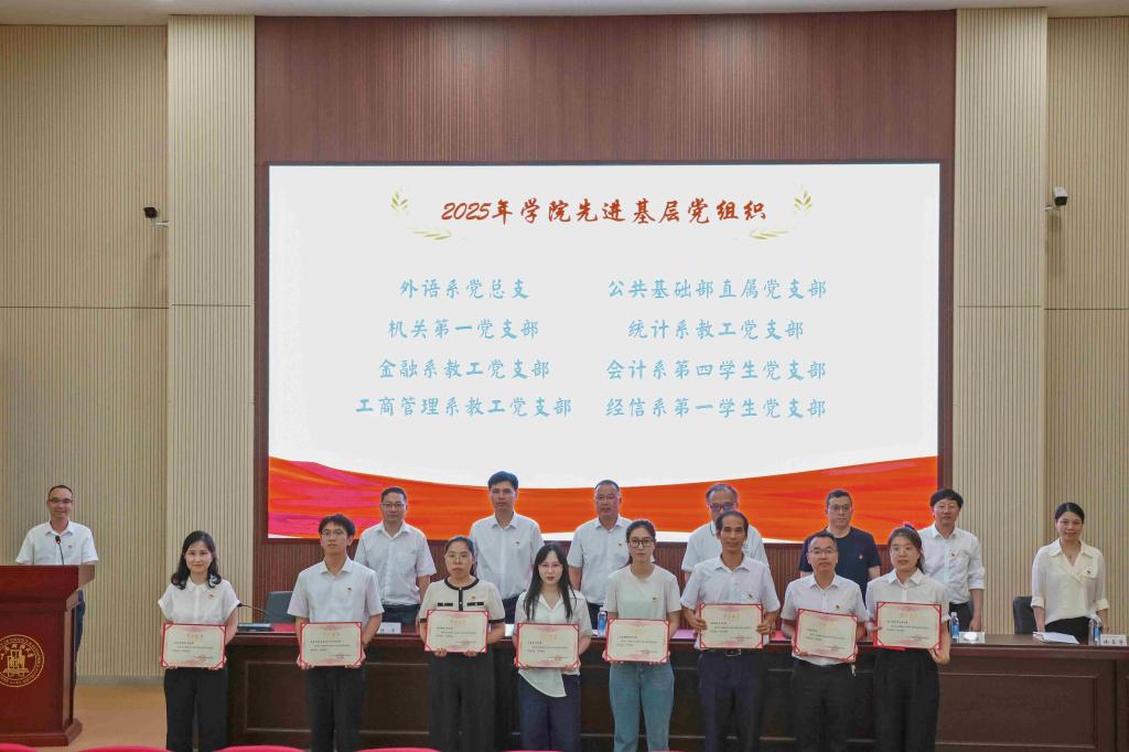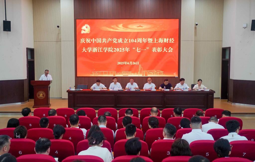 为进一步总结经验,表彰先进,树立榜样,激励学院各基层党组织和全体师生党员聚力鲜明财经特色的高水平应用型本科院校建设,以高质量党建引领学院各项事业实现高质量发展。6月26日下午,学院在行政楼报告厅举行庆祝中国共产党成立104周年暨“七一”表彰大会。学院领导班子成员出席会议。