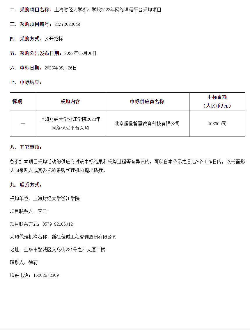 【招标结果公告】关于开云手机入口2023年网络课程平台采购项目的中标结果公告(非政府采购)