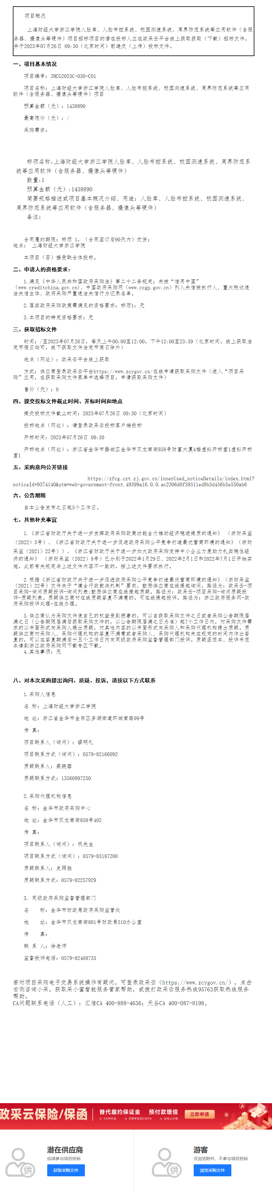 【公开招标】金华市政府采购中心关于开云手机入口人脸库、人脸布控系统、校园测速系统、周界防范系统等应用软件(含服务器、摄像头等硬件)项目的公开招标公告