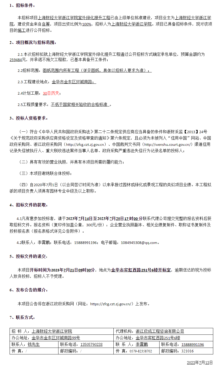 【招标公告】浙江欣成工程咨询有限公司关于开云手机入口室外绿化提升工程的公开招标公告(非政府采购)