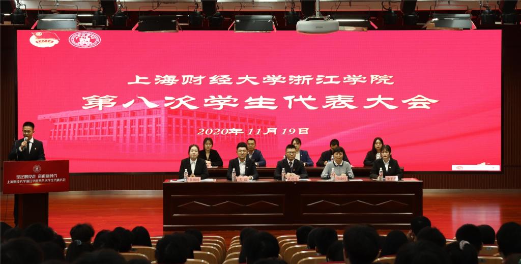 11月19日,学院第八次学生代表大会在图书馆报告厅召开,院党委副书记孔德民,金华市学生联合会执行主席金子琳,院党委学工部、团委及各系团总支负责人出席开幕式。来自全院各系的学生代表共计240人参加了会议。