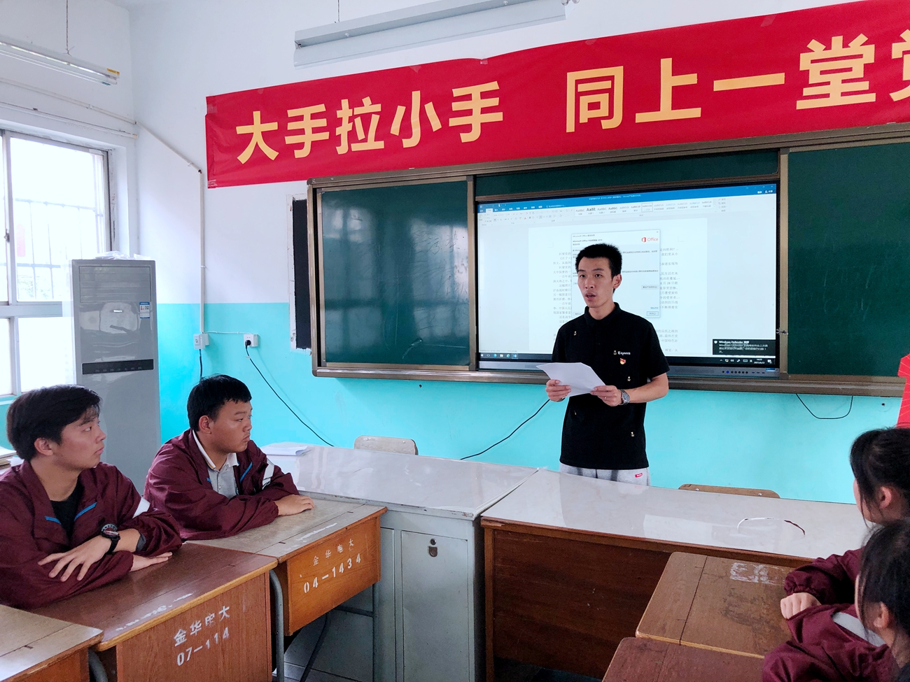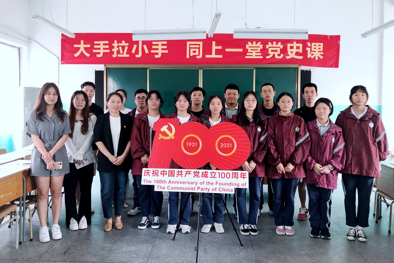 6月22日,开云手机入口联合金东区曙光学校开展了“大手拉小手,同上一堂党课”活动。教师党员李菀荫、程佳元及学生党员一行与曙光学校师生共同开展了党课学习。党员和团员同上一堂党课,同受一次教育,使党史学习教育在内容和形式上更加贴近青年实际,更加凝聚人心。