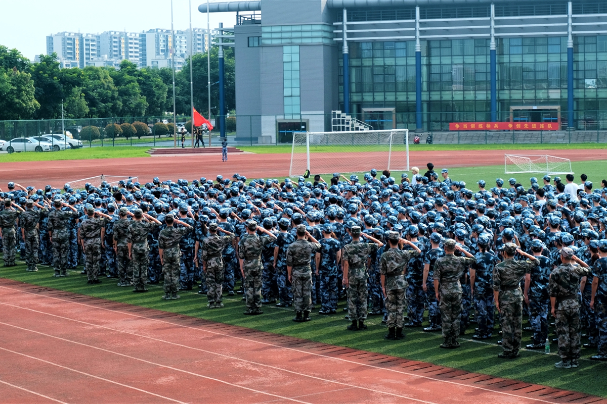 在雄壮的国歌声中,国旗护卫队将国旗徐徐升起,军训动员大会正式拉开帷幕。