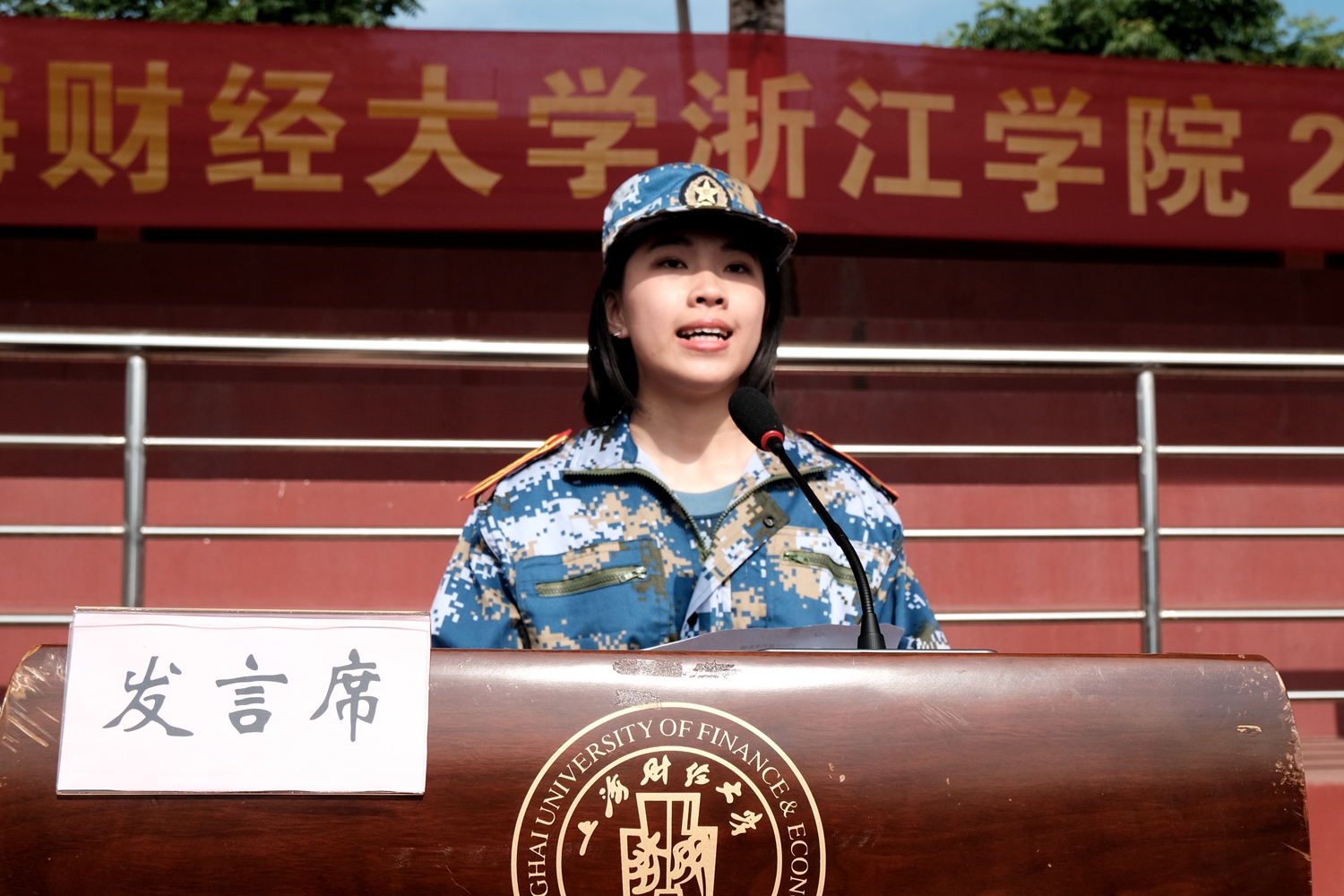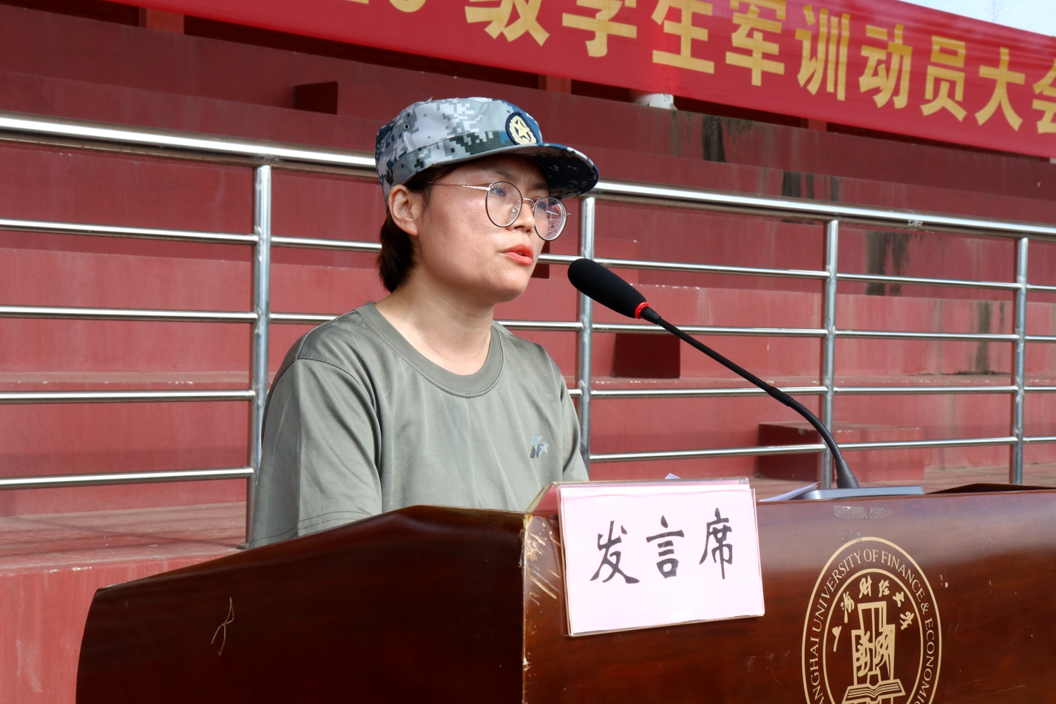 参训学生代表2020级注册会计麻雅薇做表态发言,代表2020级全体学生进行宣誓,在军训期间服从命令,听从指挥,严守纪律,团结协作,不怕苦不怕累,保证完成军训任务。