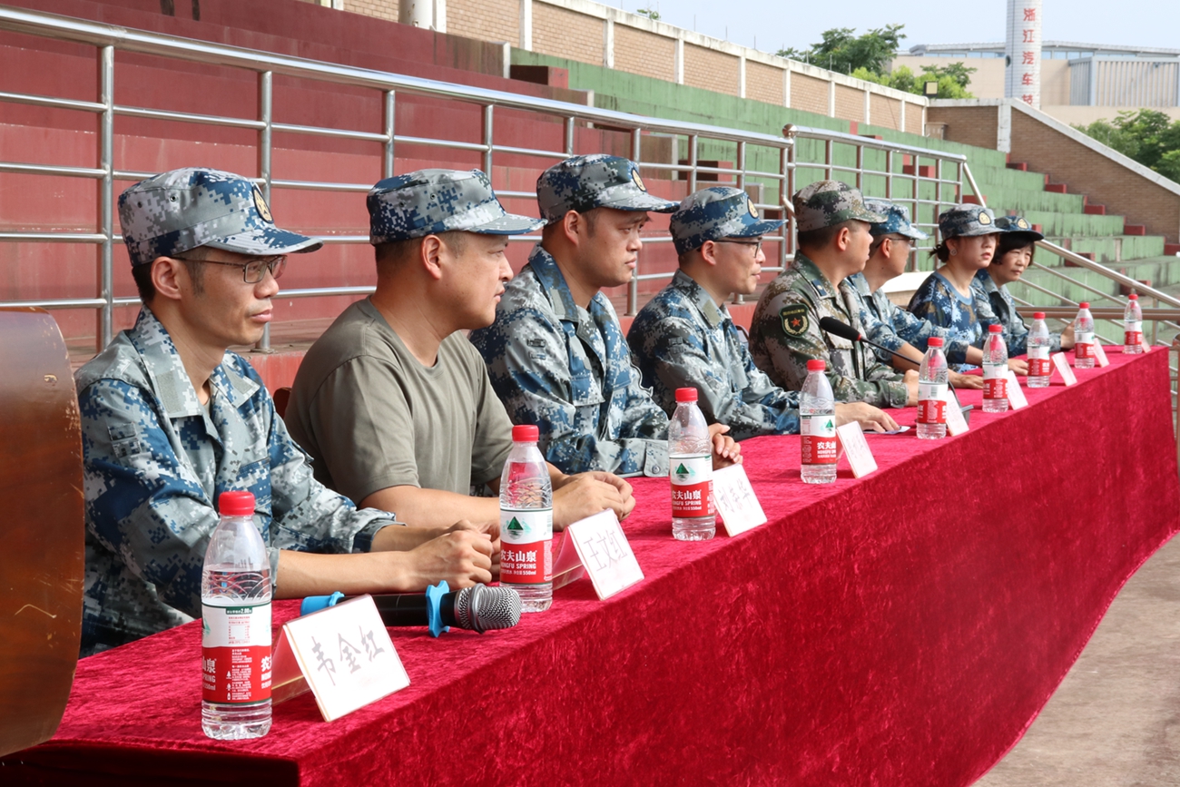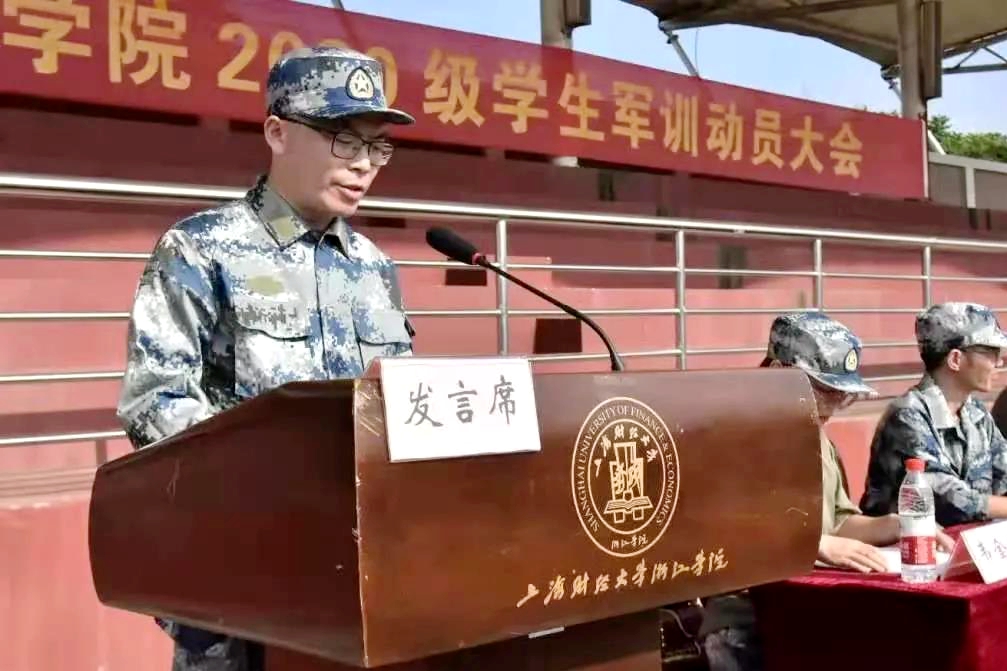孔德民作军训动员讲话,他首先代表学院向前来指导军训工作的金东区人武部领导和承训的全体教官表示热烈的欢迎和诚挚的感谢。他表示,每一位普通高等学校学生都要接受基本军事训练,军训是财浙学子体验军营生活、磨炼体魄意志、增强集体观念、培养吃苦耐劳精神的重要课程,让每位财浙学子血液中流淌着爱国的基因,骨子里有着对民族富强、强盛的信念。他相信,本次军训虽然时间紧、任务重、天气闷热多雨,但是财浙学子在教官的带领下能够克服困难、战胜自我,以优异的成绩献礼建党一百周年。最后,他提出三点要求:一是要深化认识、增强观念,不断提升国防意识和爱国热情;二是要耐得辛苦、忍得枯燥,面对各自困难,时刻保持饱满的热情和高昂的斗志投入军训;三是心怀祖国、志存高远、苦练本领、锤炼品质,严守纪律、争当标兵,尊重教官教官,融入团队。