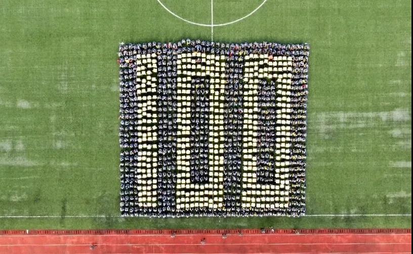 分列式结束后,各方阵向操场中心聚集,特色方阵表演开始。同学们井然有序、整齐划一,以“活字印刷”方式,摆出“中国共产党万岁”等字样,最终以党旗造型收尾。特色方阵表演震撼全场,响起热烈掌声。同学们以出色的表演,向建党100周年献礼!