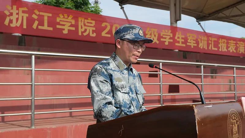 孔德民代表学院向金东区人武部领导、全体教官表示由衷感谢,向以优异成绩通过军训这门必修课的全体2020级学生表示热烈祝贺。孔德民表示,学生们在军训期间不仅以教官为榜样,坚韧不拔、刻苦训练,同时在雨天时能自律自觉参与观看庆祝中国共产党成立100周年大会直播、红色电影等活动用自己的形式庆祝中国共产党成立100周年。最后孔德民向全体2020级学生提出三点希望:一是希望同学们心怀梦想、志存高远,做有理想和有信念的有志青年;二是希望同学们不负韶华、创新不止,做有能力和有学识的追梦青年;三是希望同学们坚韧不拔、砥砺前行,做有责任和有担当的实干青年。