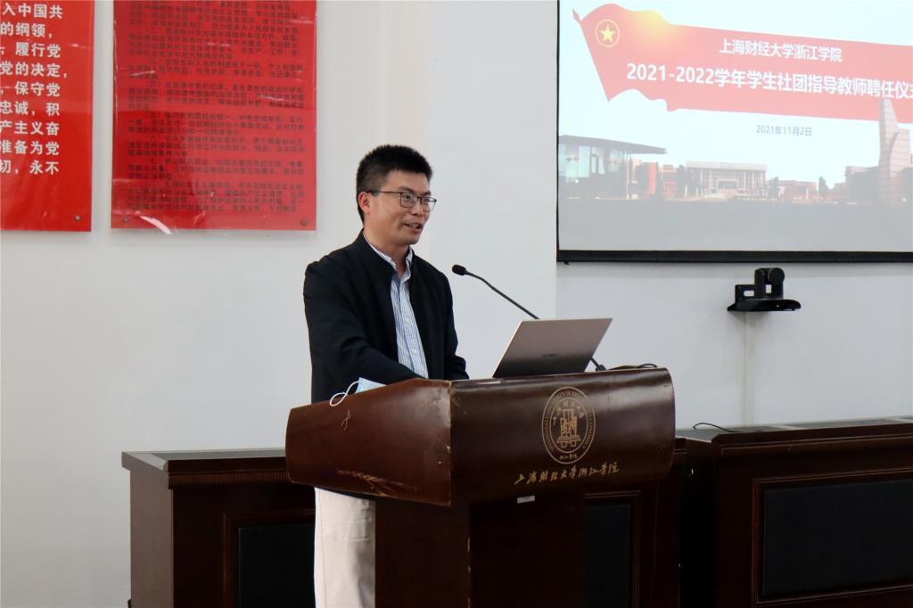 在仪式上,韦金红宣读了《关于2021-2022年度学院学生社团指导教师聘任的通知》。各系党总支负责人分别为32名学生社团指导教师颁发了聘书。院学生瑶池舞社指导教师盛奥作了教师代表发言,表达了对于指导、监督、提高学生社团工作的信心与展望。