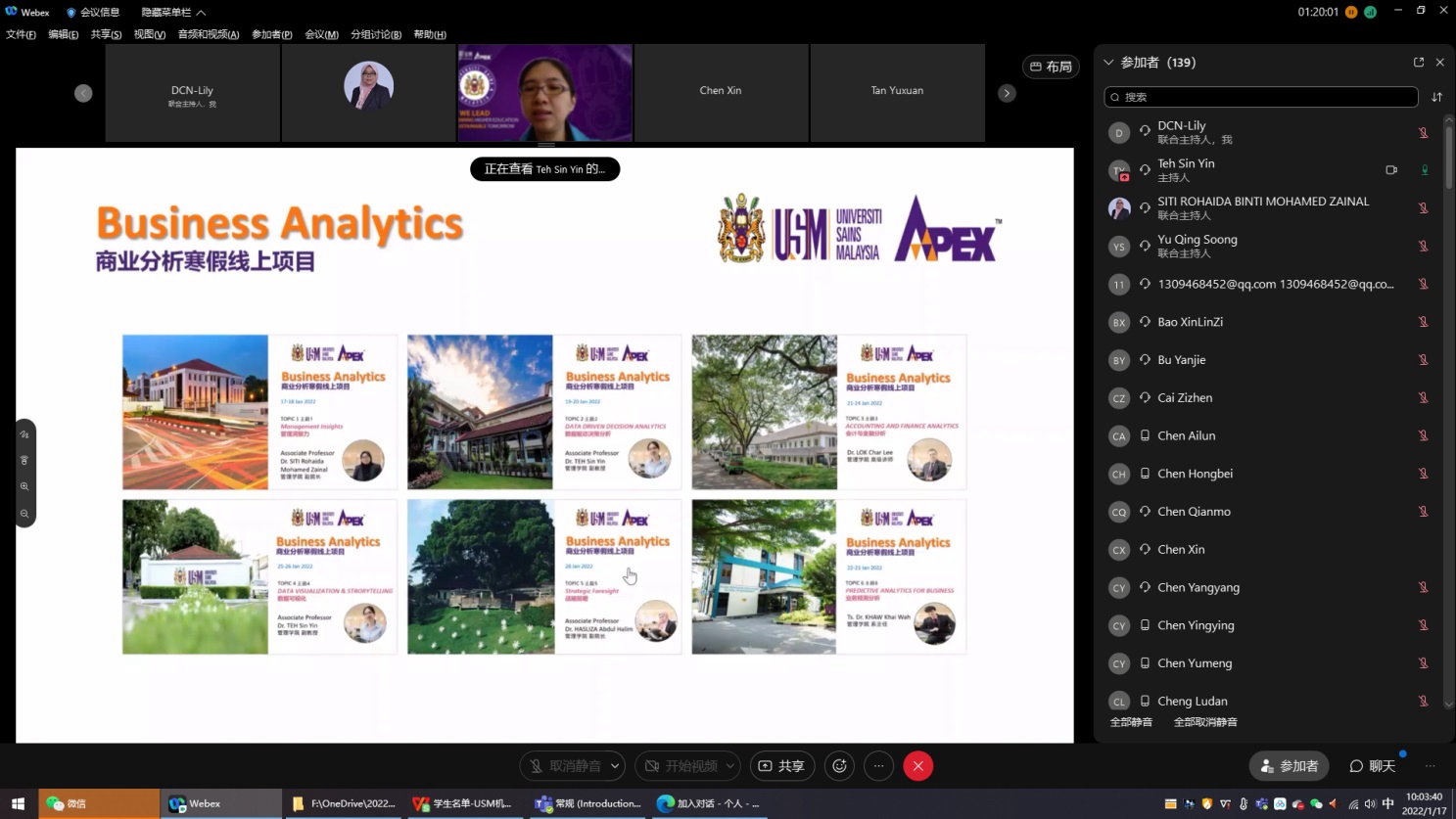 2022年1月17日至28日,开云手机入口许栩桦等50名同学在通过了系部及学院选拔后参加了学院首期马来西亚理科大学商业分析主题寒假线上课程。