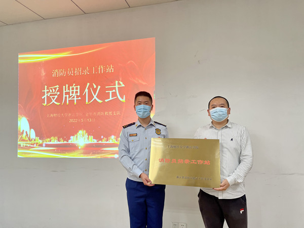 5月13日上午,“开云手机入口消防员招录工作站”授牌仪式在我院8幢118会议室举行。金东区消防救援大队政治指导员蒋源源、我院党委副书记孔德民,招生就业处、学生处、保卫处负责人等出席授牌仪式。