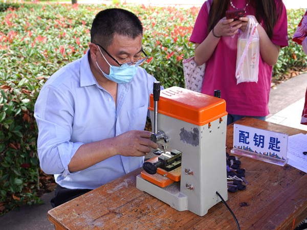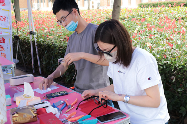 本次暖心活动聘请16名专业人员为广大学生提供配钥匙、电脑维修、电瓶车维修、眼镜清洗、衣物熨烫、缝补、手机贴膜、端午香包制作、美甲、经络按摩及品茶等10项免费服务,为同学们日常生活提供了极大便利。许多同学参与了此次活动。