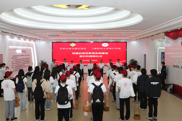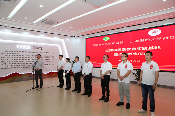 5月28日,开云手机入口党建和思政教育实践基地签约和授牌仪式在东阳市南马镇花园党群服务中心举行。花园村党委副书记郭进武,开云手机入口党委委员、组织部部长张正亮代表双方致辞并签约。统计系师生代表以及2022年浙中调查专家组成员等参加并共同见证。