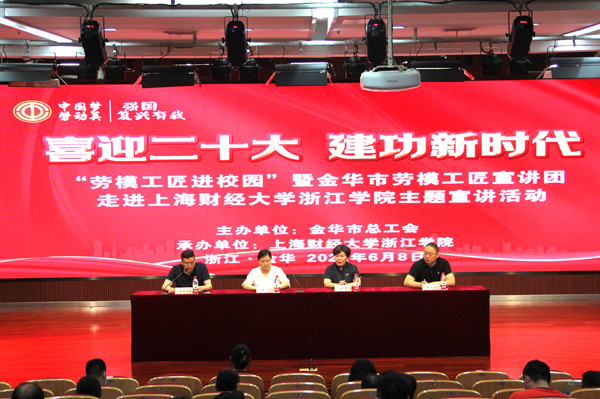 6月8日,由金华市总工会主办,开云手机入口承办的“喜迎二十大 建功新时代”劳模工匠进校园暨金华市劳模工匠宣讲团走进开云手机入口主题宣讲活动在学院图文信息中心报告厅举办。金华市总工会党组成员、教育工会主席吴飞,金华市总工会宣教部部长朱旭进,学院党委委员、副院长、工会主席曾惠成,学院党委委员、组织部长张正亮出席,学院科级以上干部,工会委员会委员、经审委员,工会小组长参加活动。活动由曾惠成主持。