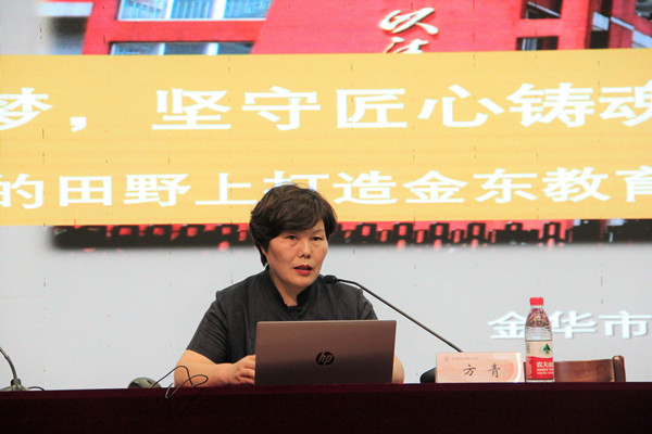 全国劳动模范、中国好校长、全国践行社会主义核心价值观先进人物,金东区教体局副局长、金东区实验小学校长方青以“35载潜心追梦,坚守匠心铸魂育人”为主题,声情并茂地讲述了自身从乡村教师到小学校长,一步步成长为全国人大代表的奋斗故事。她表示,劳模的意义在于用个人的劳动托举起自己梦想的同时,更要影响、带领一群人。她勉励教职工要敬业、爱业、勤业、乐业,真心细心用心关爱学生,要坚定理想信念,坚持不懈,坚定不移教好书、育好人。