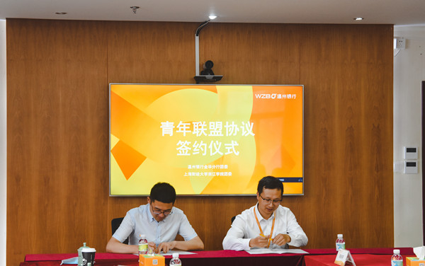 随后,学院团委与温州银行金华分行团委举行青年联盟结对共建签约仪式。双方负责人表示,希望充分发挥双方在资源、青年人才等方面的优势,建立长期、紧密的合作关系。