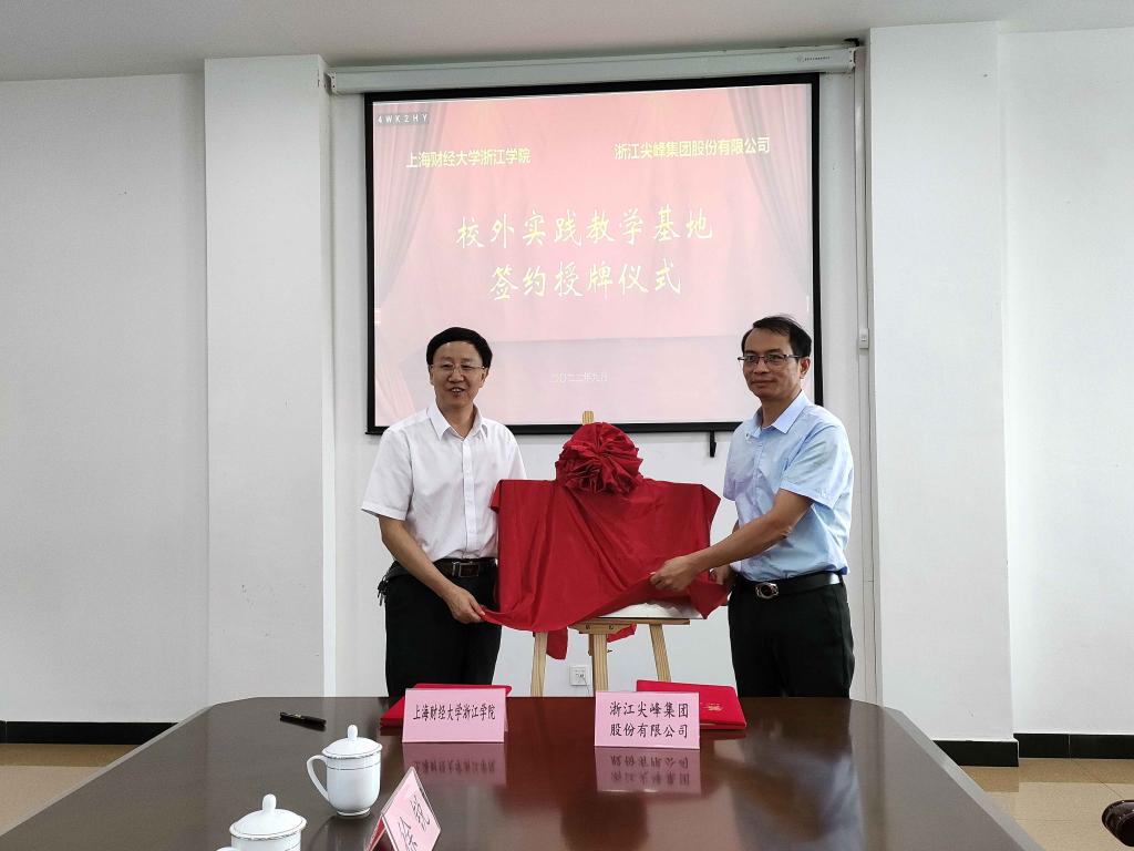 9月21日下午,学院与浙江尖峰集团股份有限公司举行校外实践教学基地签约授牌仪式。浙江尖峰集团股份有限公司财务总监兰小龙等一行三人,学院副院长邱风、实践教学中心主任朱艳、会计系副系主任王霞和相关教师代表参加了仪式。