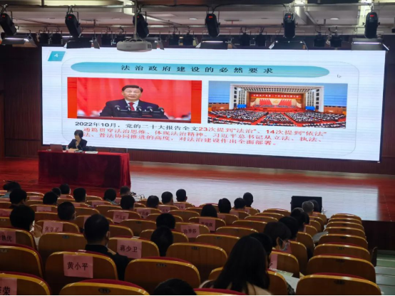 10月27-28日,金华市司法局在我院图书信息中心205报告厅举办2022年度全市政府法律事务工作培训班。培训班及时学习贯彻党的二十大精神,以法治政府建设示范市创建为引领,紧贴最新工作要求,重点针对合法性审查工作规范化建设、重大行政执法决定法制审核、审查发现的常见问题剖析和乡镇(街道)合法性审查工作进行了集中授课和座谈交流。