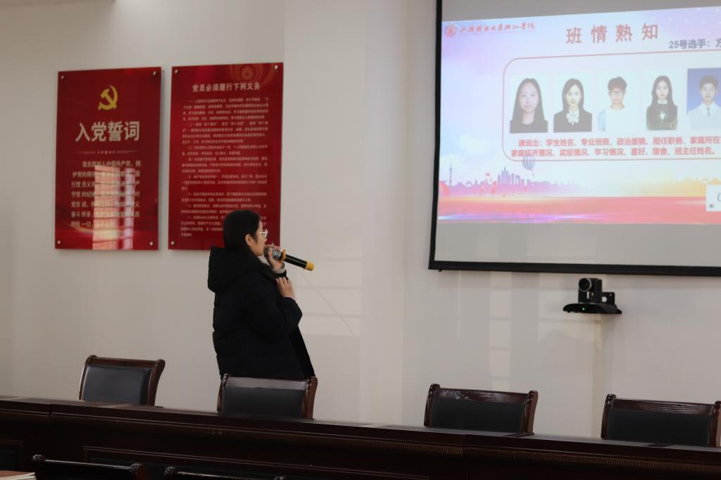 为学习贯彻党的二十大精神,深刻领悟党的二十大提出的新思想新论断、作出的新部署新要求,围绕立德树人根本任务,不断提升辅导员的理论水平、专业素养和工作能力,进一步加强辅导员队伍专业化职业化建设,2月23日下午,学院第八届辅导员素质能力大赛在28幢118党员之家顺利落下帷幕。院长办公室、保卫处、学生处和各系相关工作负责人担任比赛评委。学院共有26名辅导员参赛,全体学工线老师观摩比赛。