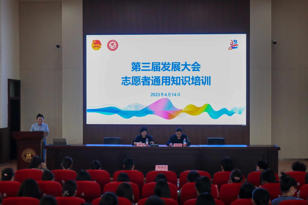 为高效率、高质量地完成第三届金华发展大会志愿服务工作,满足工作岗位的需要,迅速提高青年志愿者工作能力,4月14日,由金华团市委举办的第三届金华发展大会志愿者通用知识培训在学院28幢120报告厅顺利举行。团市委副书记余雅晶,学院党委委员、副院长曾惠成出席开班仪式。