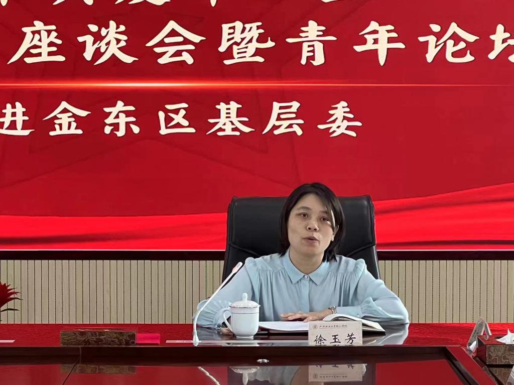 5月4日,民进金东区基层委纪念中共中央发布“五一口号”75周年座谈会暨四季读书会·青年论坛在我院举行。民进金华市委会专职副主委许英姿出席会议并讲话,学院党委委员、统战部部长徐玉芳致辞。会议由民进金东区基层委主委蒋双庆主持。