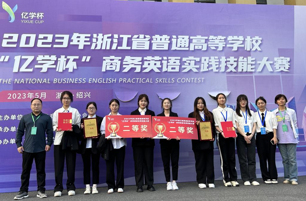 5月28日,浙江省普通高等学校“亿学杯”商务英语实践技能大赛在绍兴圆满落幕。本次大赛以“弘扬中国企业家精神,助力经济高质量发展”为主题,共有来自全省各高校的29支队伍参与角逐。我院外语系派出两支代表队参赛,通过调研报告、笔试、演讲等环节,最后均取得了浙江省二等奖的优异成绩,实现了新的突破。